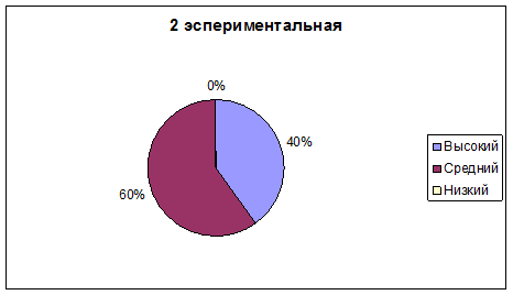 Сравнительный анализ показателей обеих групп показал, что у детей экспериментальной группы в ходе эксперимента значительно повысился уровень сформированности экологических знаний. Количество детей с высоким уровнем развития возросло в 4 раза. (В экспериментальной группе по завершению исследования уже 4 ребёнка имели высокий уровень развития, а вначале был 1 ребёнок). Средний уровень возрос в 1,5 раза. Стало 6 детей, а было 4. Детей с низким уровнем не стало вообще.