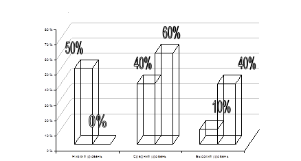 В контрольной группе также можно наблюдать небольшой прогресс, но он не настолько ощутим. С высоким уровнем развития как был, так и остался один ребёнок. Со средним уровнем развития количество детей возросло в 1,2 раза (было 5 человек, стало 6). С низким уровнем развития уменьшилось лишь в 1,3 раза, было 4 человека, стало 3.