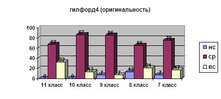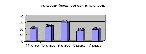 4 модифицированный субтест Гилфорда, главным образом, связан именно с речью, лексикой. По средним значениям наиболее оригинальными оказался 9 класс (рис. 10)