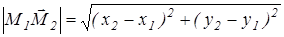 Нахождение данной формулы опирается на использование предыдущей. Пусть имеются точки М1(х1,у1)и М2(х2,у2), необходимо найти расстояние между этими точками. Рассмотрим вектор М1М2. Его координаты равны