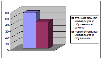 Как показывает анализ результатов, полученных на выборке учащихся 1 класса на этапе констатирующего эксперимента с помощью методики «Представь себе…» Е.П. Ильина у 57,1% испытуемых - отрицательная мотивация к обучению в школе; у 42,9% учащихся мотивация к обучению в школе положительная – рисунок 4.